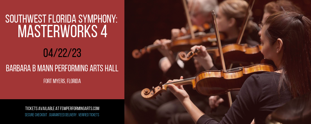 The streets are buzzing in anticipation of one of the hottest acts around coming to Barbara B Mann Performing Arts Hall in Fort Myers, Florida and this is your best shot to experience one of your favorite acts! When Southwest Florida Symphony: Masterworks 4 arrives in Fort Myers, Florida, you can expect a show like no other – intense beats, sick arrangements, and a musicality that is unmatched. This one-time-only concert brings you the most-anticipated stars to the stage for a show that will leave fans wanting more! Some of their smashing hits you could never expect, leaving you with a thrilling performance that will make Fort Myers the place to be in 2023. To enjoy the ultimate Saturday night of entertainment this April, click the ‘get tickets’ button now to see Southwest Florida Symphony: Masterworks 4 live on Saturday 22nd April 2023!